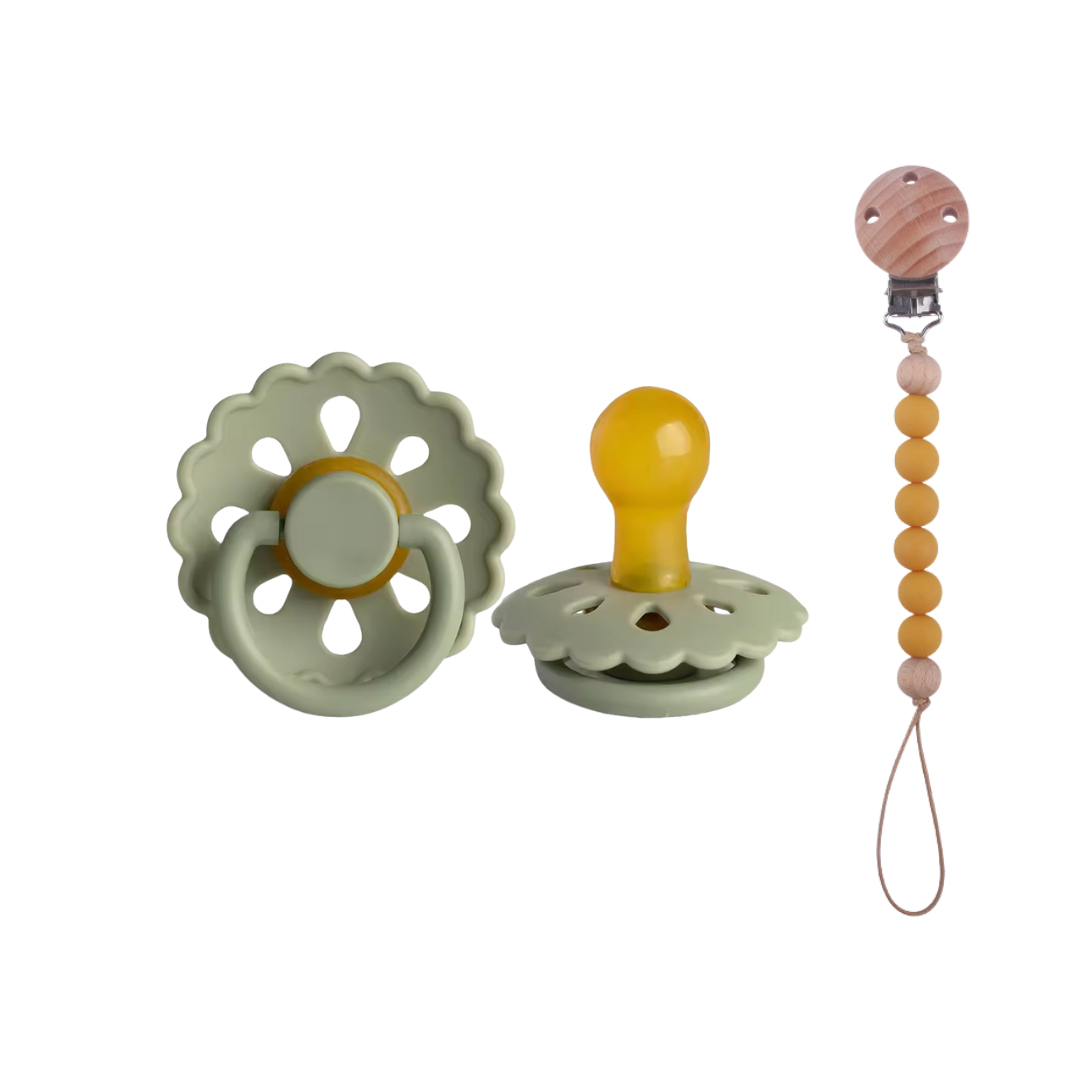 SnugClip Pacifier Holder – Keep pacifiers safe and stylish with this high-quality clip made from soft silicone beads and natural wood.